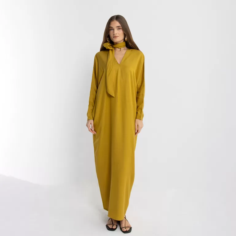 The Lunar Kaftan Dress is a sophisticated and highly elegant piece, designed to make a statement during Ramadan. Crafted from luxurious cupro fabric, this formal jalabiya offers a refined and sleek look`1