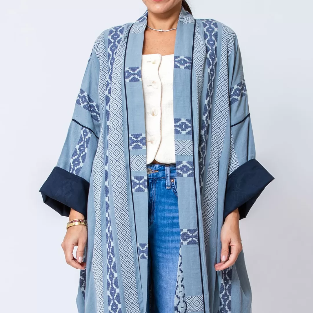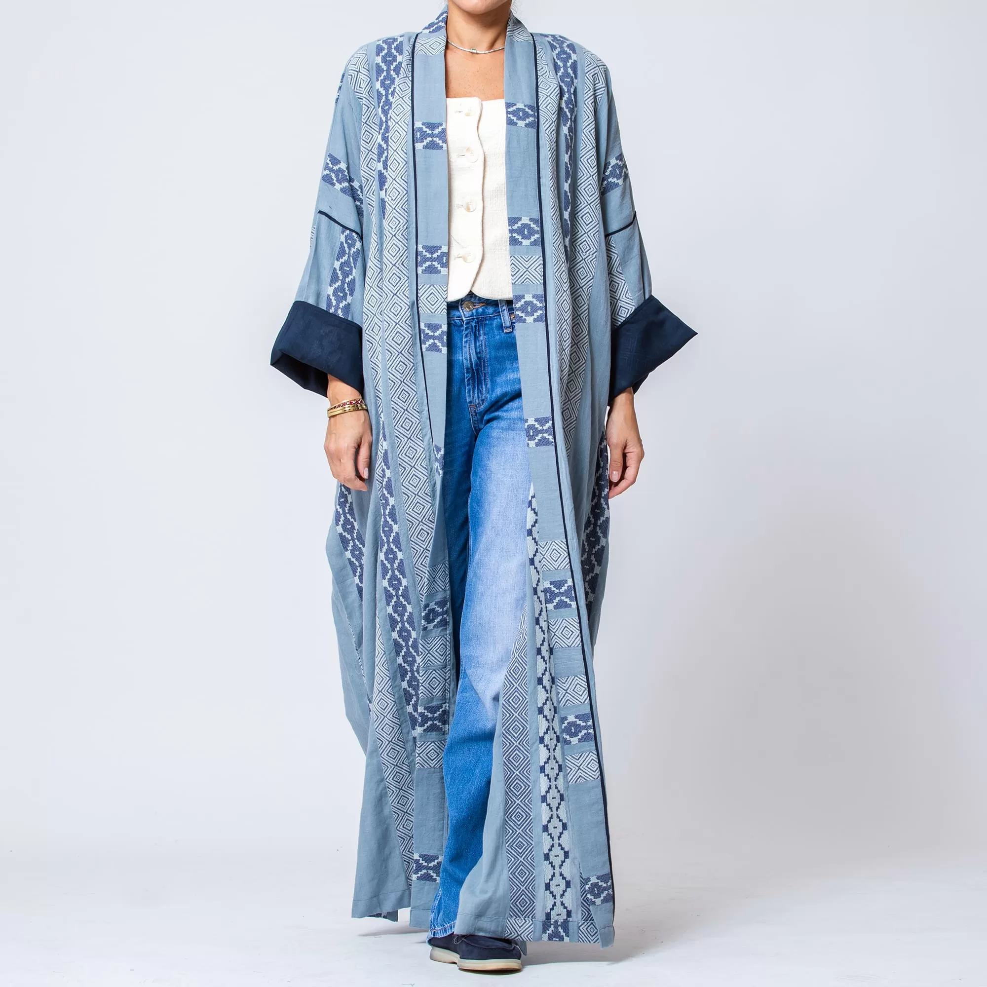 Ash – Woven Cotton Abaya with Bohemian Pattern