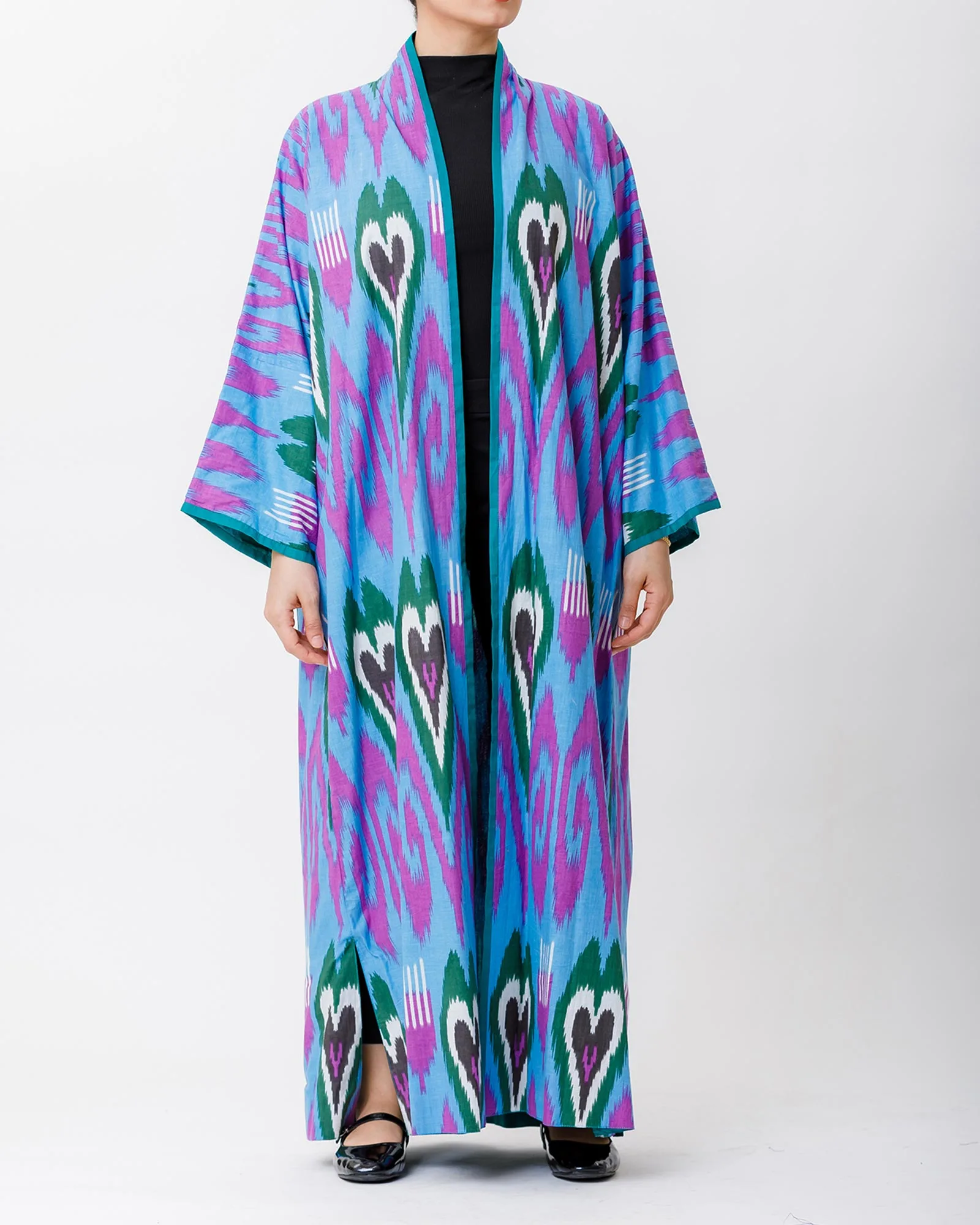Stay effortlessly refined with Azalea 2.0, an Ikat cotton abaya crafted in a straight cut with wide sleeves and elegant piping details. A timeless piece for everyday sophistication and comfort.