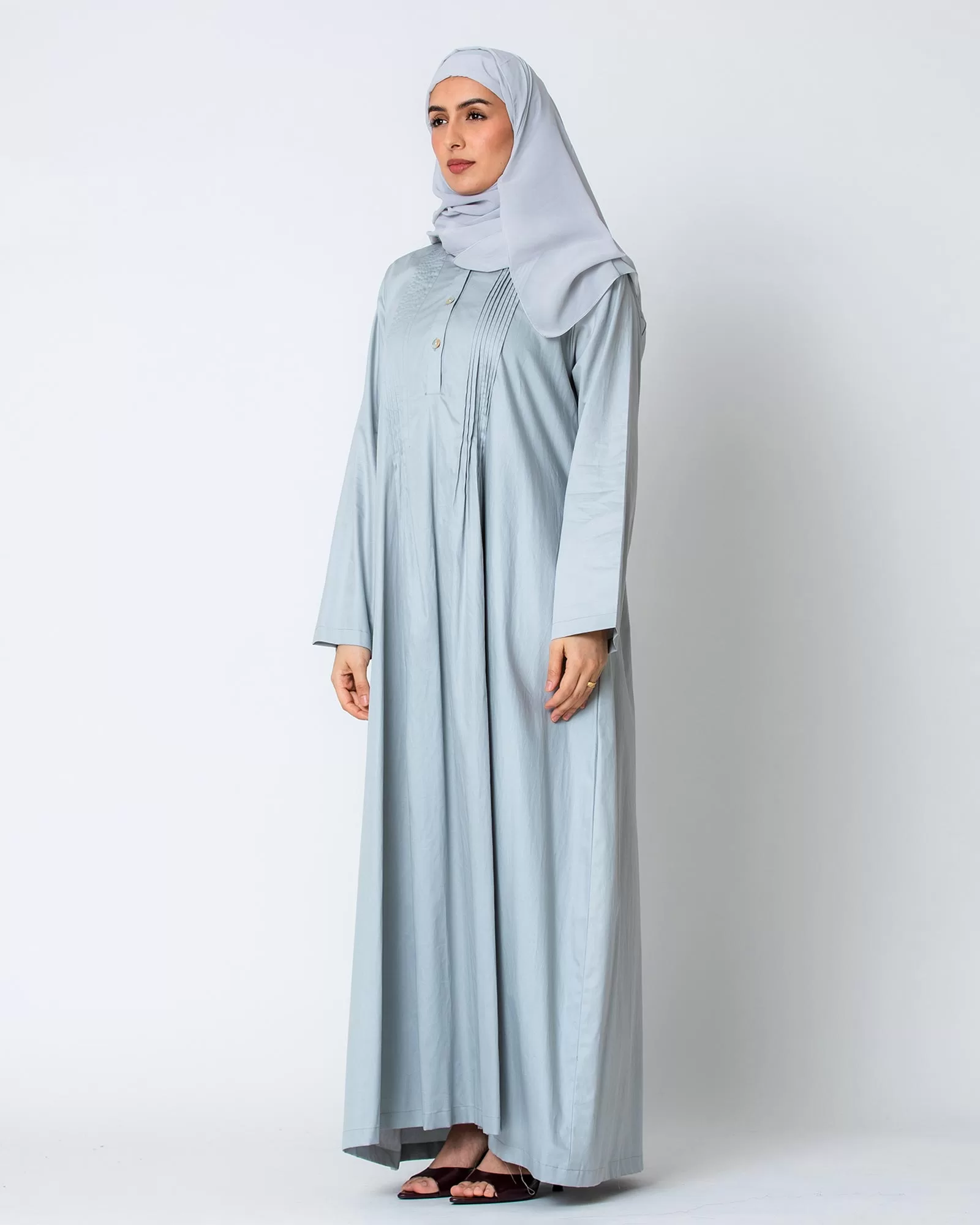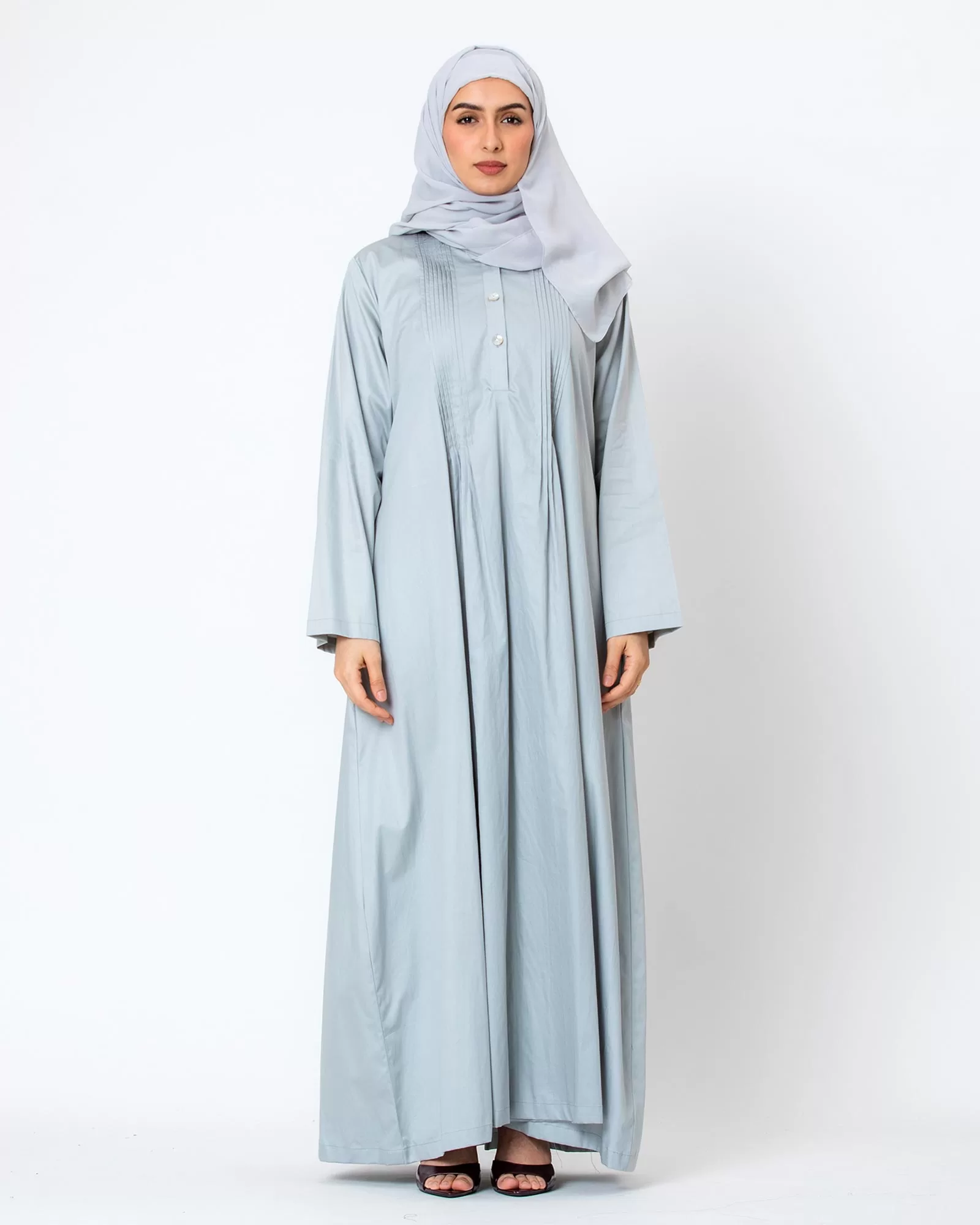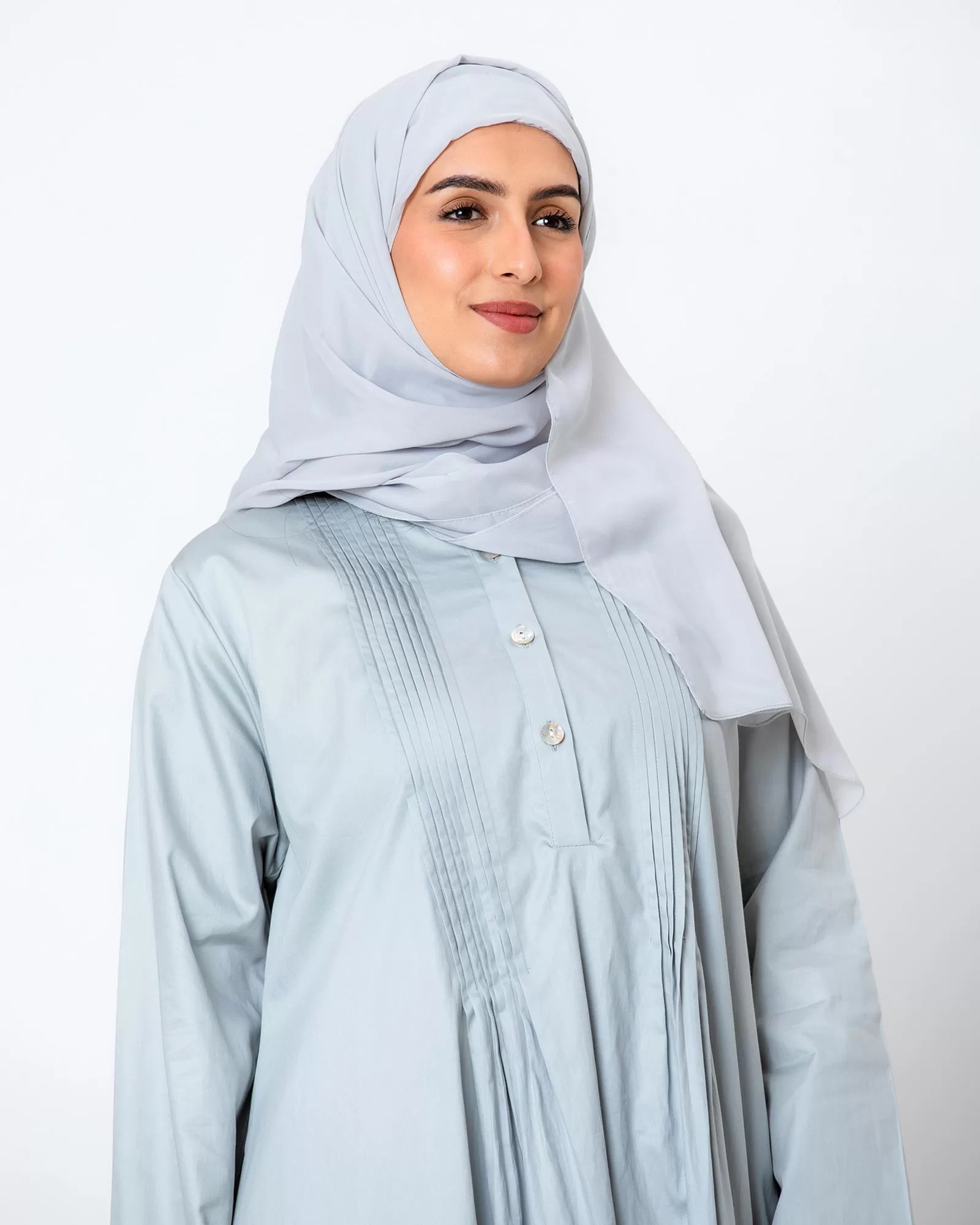 • Crafted from soft, breathable cotton fabric, the Blossom Hajj dress is ideal for sacred rituals, daily prayers, and modest everyday wear. With its A-line silhouette, pleated bodice, and front button fastening, it offers both comfort and structure. The mandarin collar adds a refined touch, while side pockets bring practicality to the design.