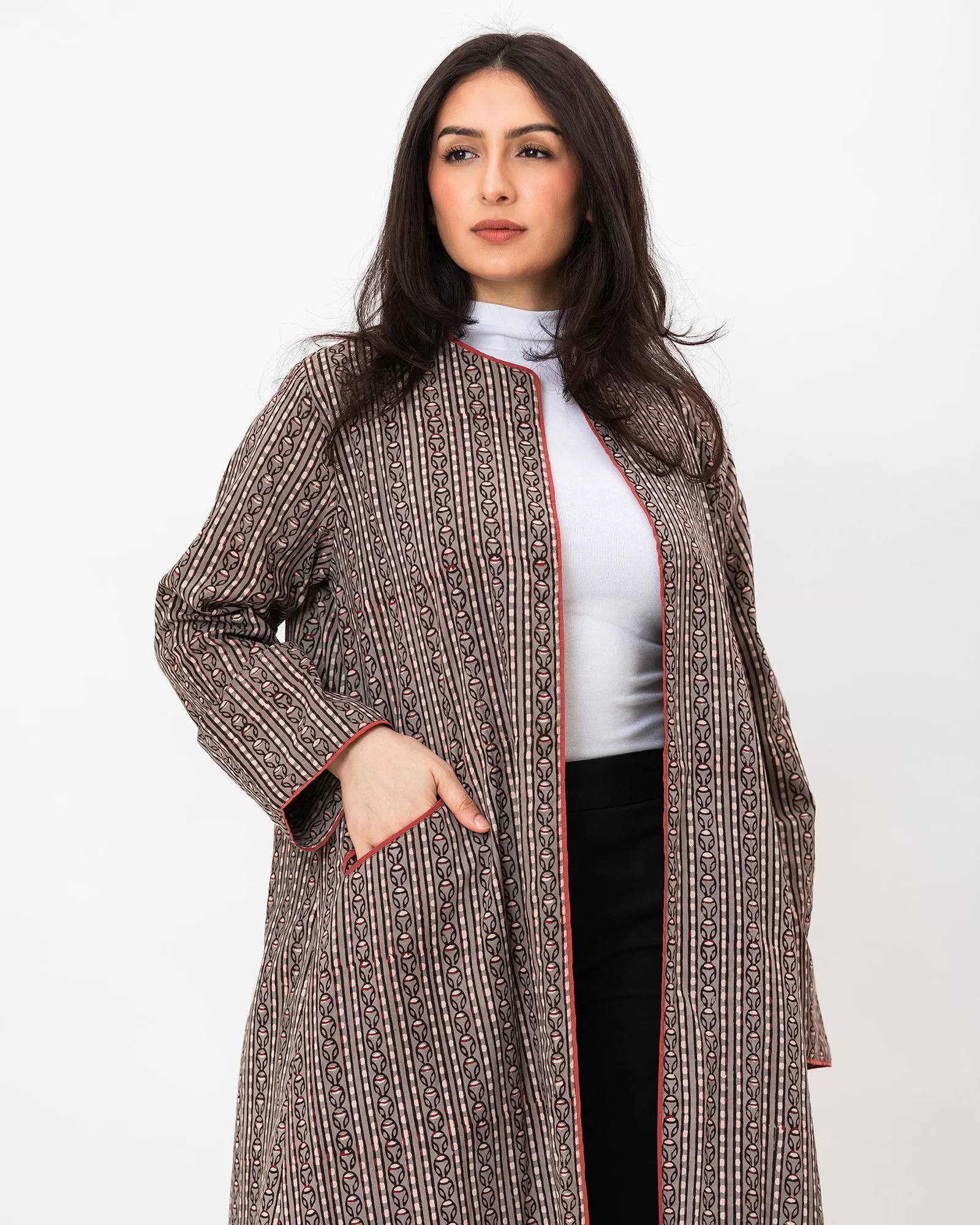 Refresh your summer wardrobe with Bonita, a printed cotton abaya that combines casual elegance with modern charm. It’s a versatile piece perfect for summer outings and office wear.