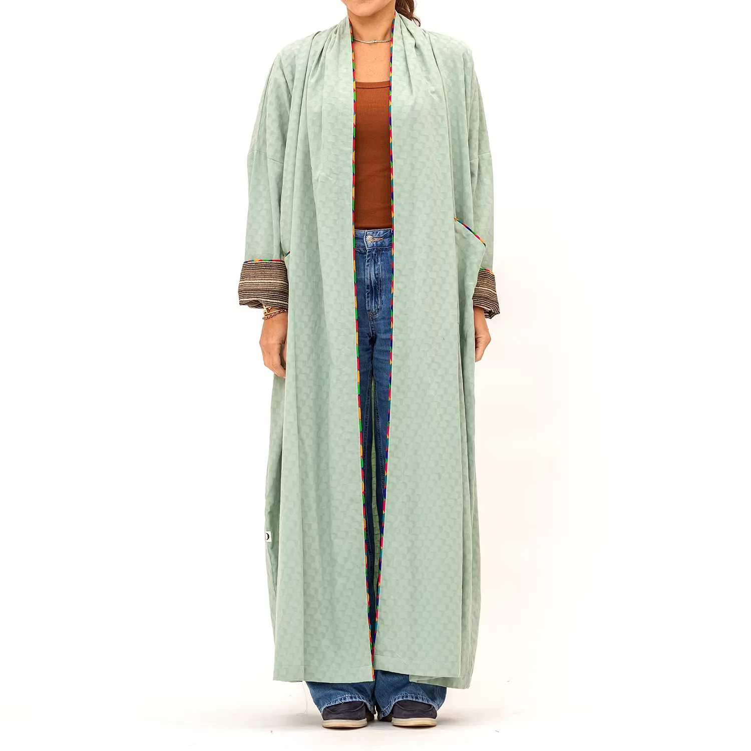 A smart and elegant straight-cut abaya, crafted from high-quality textured linen fabric. This exquisite abaya is designed to cater to the needs of modern women who seek both style and comfort.