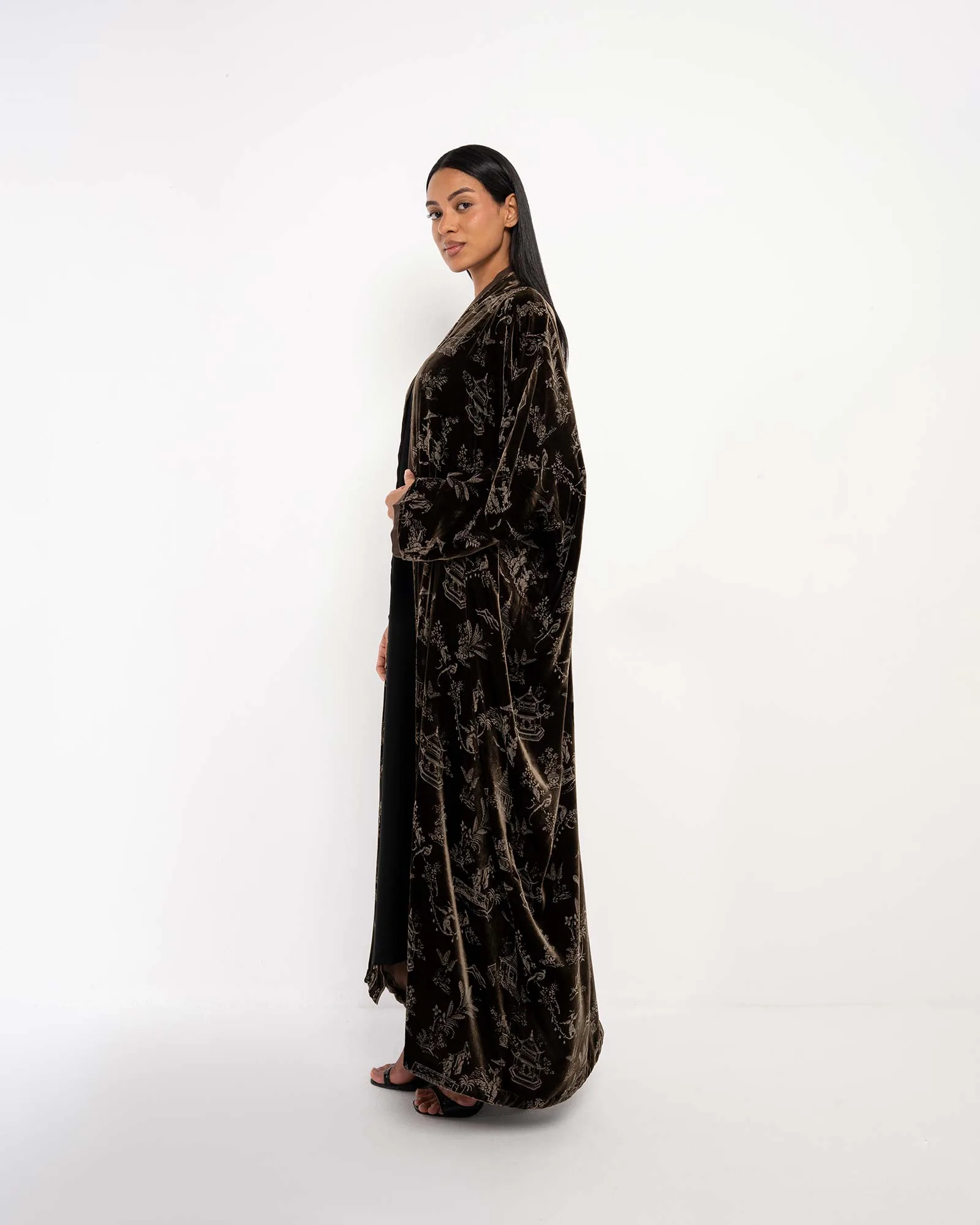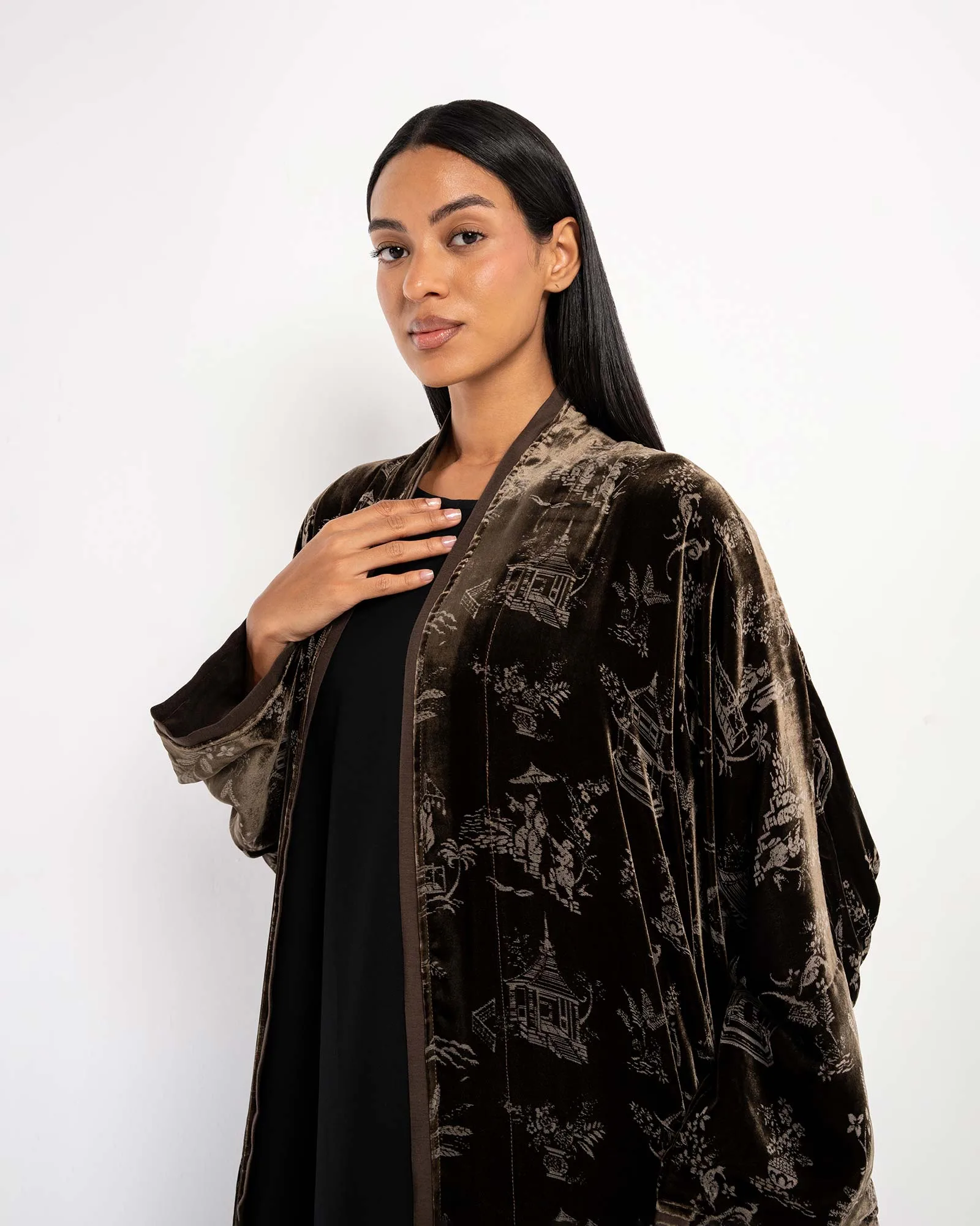Wrap yourself in warmth and elegance with Meteor 2.0, a printed velvet bisht abaya that embodies modern sophistication with traditional charm. Designed in an oversized cut and relaxed silhouette, it’s the ultimate luxury modest wear for the winter season.