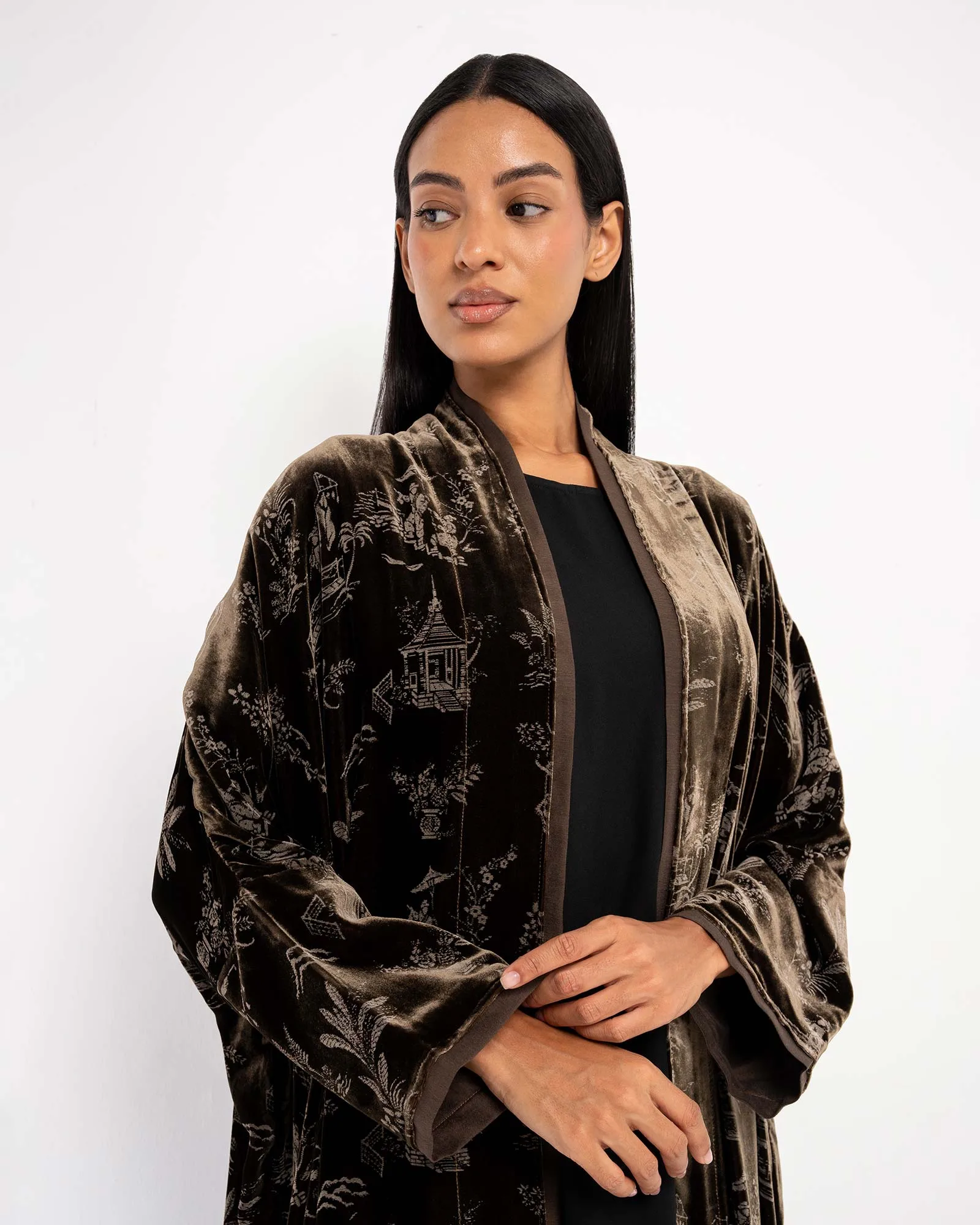 Meteor 2.0 – Printed Velvet Bisht Abaya