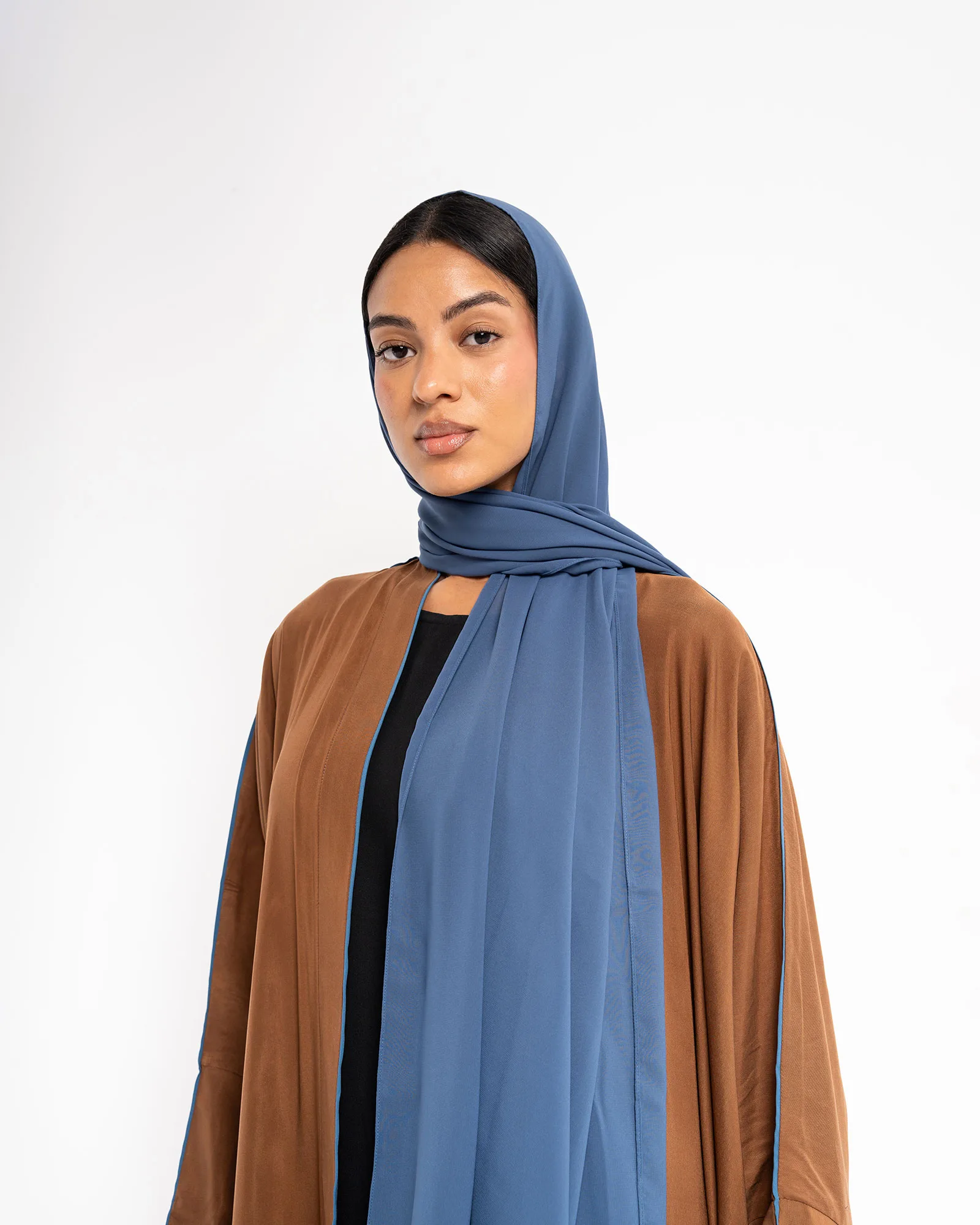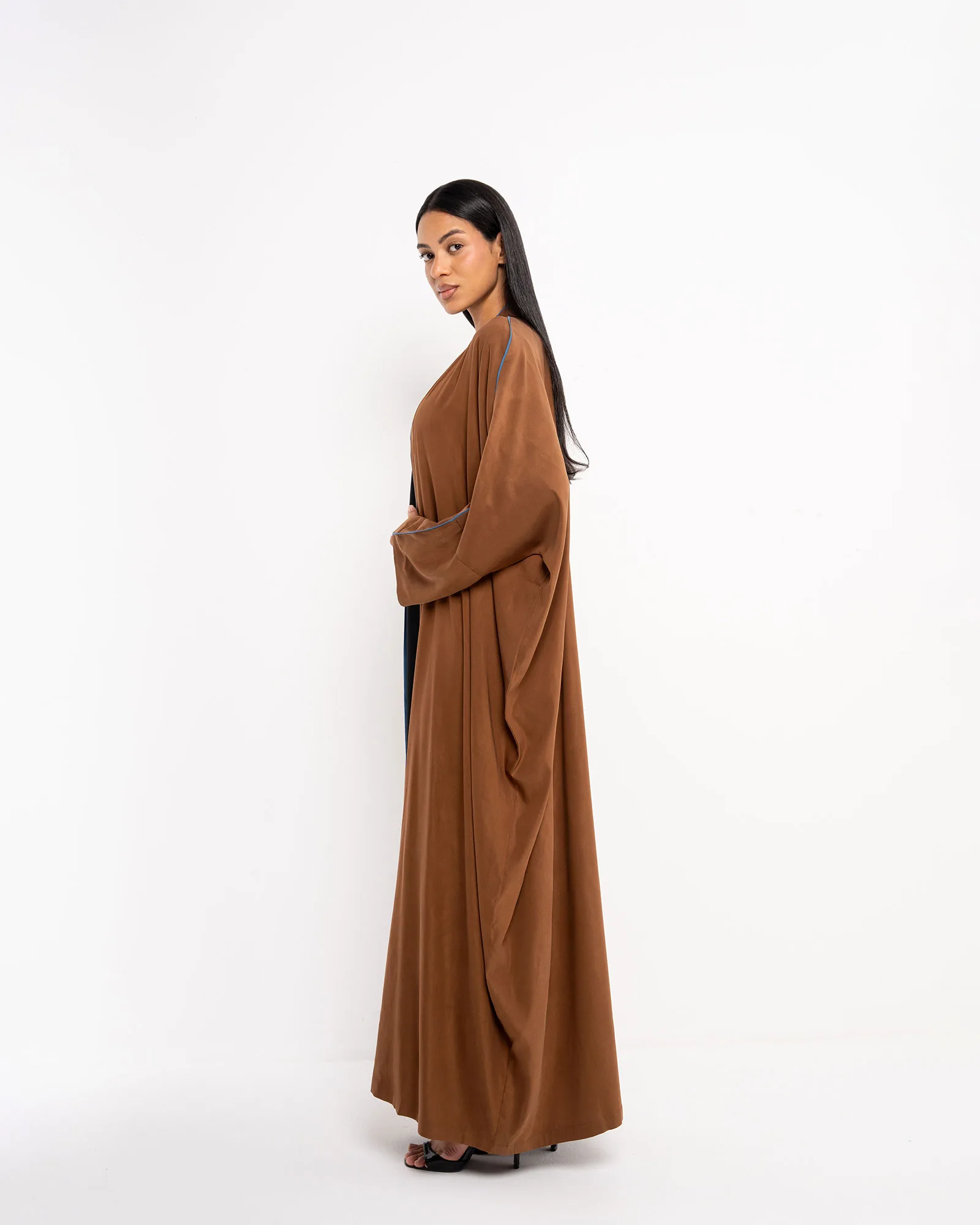 - A modern abaya that balances comfort, confidence, and luxurious texture