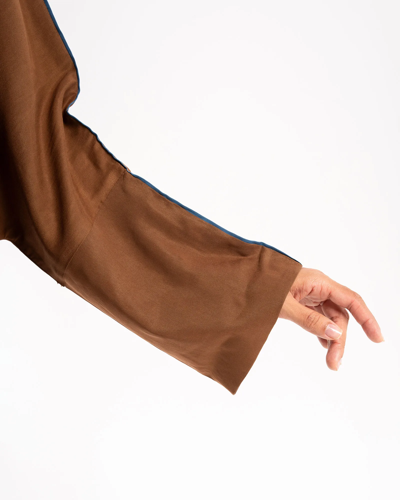 Refined yet effortlessly modern, Mira is a washed silk abaya in a bisht kaftan silhouette that transitions seamlessly from office elegance to evening sophistication. A timeless expression of luxury modest wear.