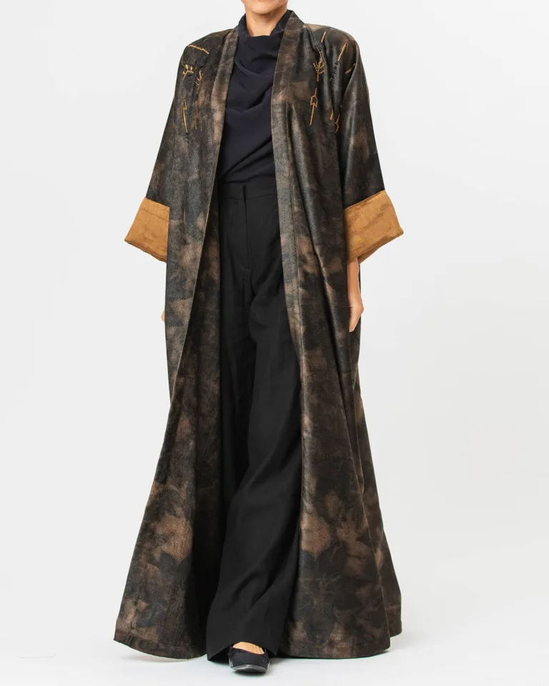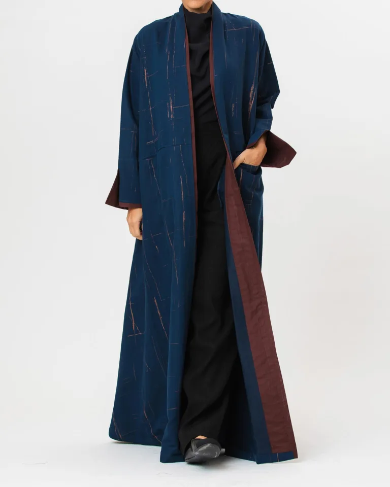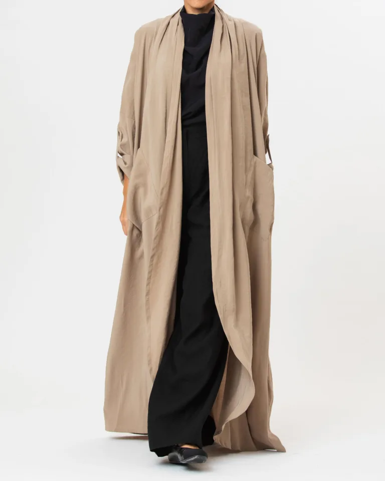 Elevate your style with the Apollo, a stunning blazer-style jacket abaya crafted from premium washed linen fabric. This effortlessly chic long jacket is a statement piece that redefines modern street style, perfect for the fashion-forward individual.