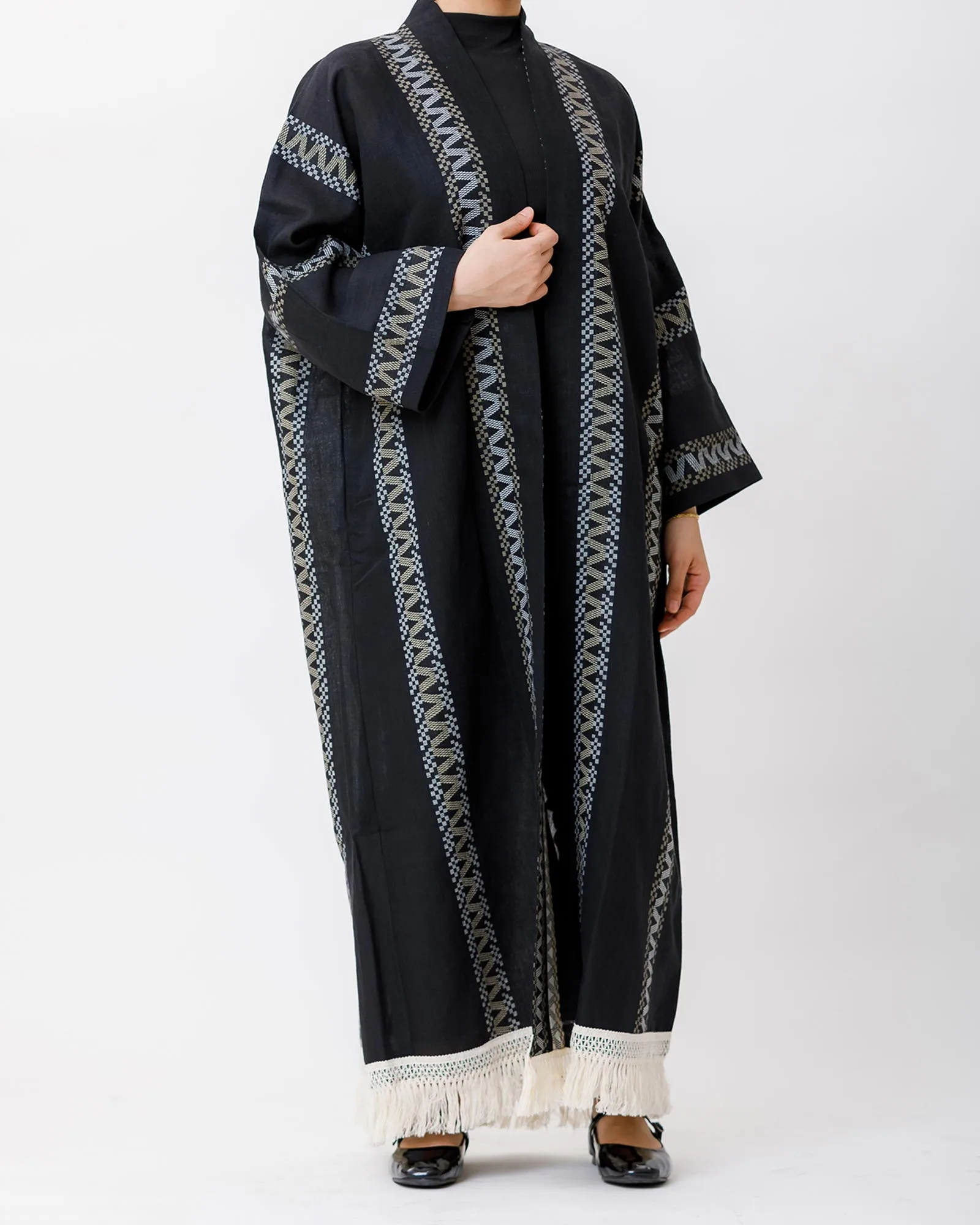 Aria Fringe – Woven Linen Kaftan Abaya